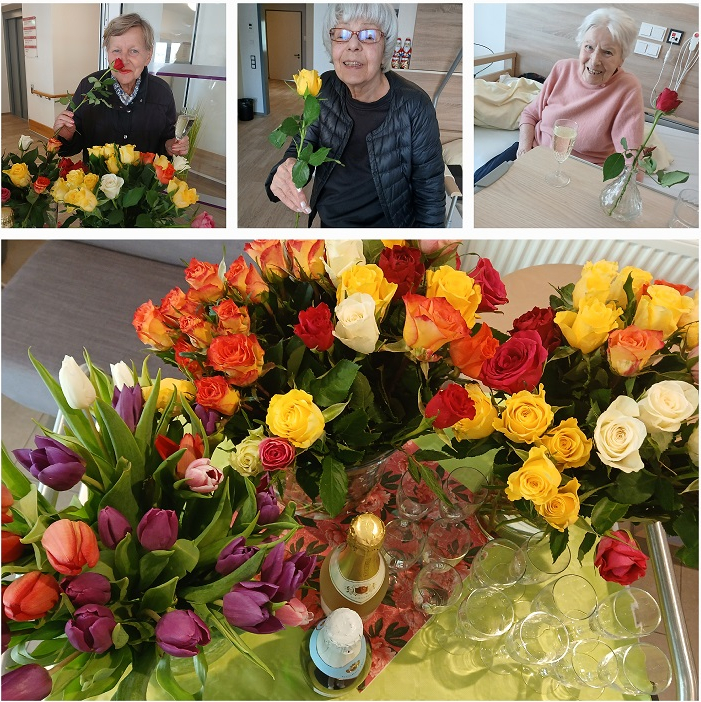 Im Zeichen der Wertschätzung und Lebensfreude feierten wir den Internationalen Frauentag mit unseren Bewohnerinnen. Strahlende Gesichter, duftende Rosen und bunte Tulpen sorgten für eine warme Atmosphäre. Bei einem prickelnden Gläschen Sekt wurde gelacht, geplaudert und gemeinsam ein besonderer Moment genossen.